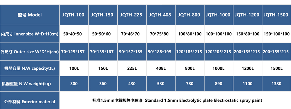 用途:可程式恒溫恒濕試驗箱 JQTH-1200L(屬于:雙開門非標定制款)主要用來測試各種材料耐熱、耐寒、耐干、耐濕的性能。本機采用智能中英俄文顯示7寸彩色觸控式屏幕畫面,操作簡單,程序編輯