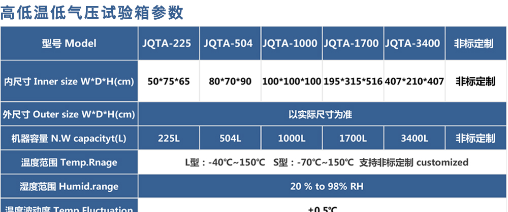 用途:高低溫低氣壓試驗箱主要用于試驗工件在低氣壓、高溫低溫單項或同時作用下的環境適應性與可靠性試驗,并或同時對試件通電進行電氣性能參數的測量。