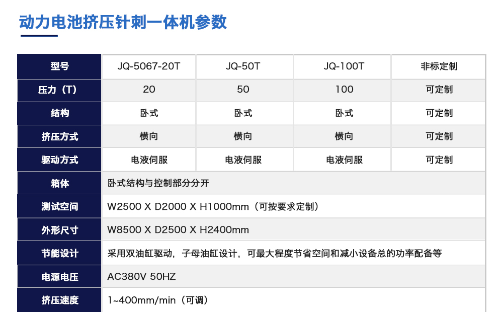 用途:動力電池擠壓針刺一體機模擬各類動力鋰電池組在使用過程中,電池包遭受擠壓的情形,人工呈現電池在遭受擠壓時可能出現的不同狀況。 原理:電池包擠壓試驗機將電池放在連個擠壓