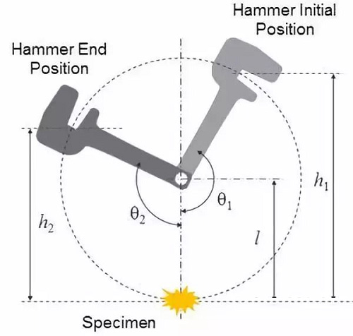 制備有一定形狀和尺寸的金屬試樣,使其具有U形缺口或V形缺口,在夏比沖擊試驗(yàn)機(jī)上處于簡(jiǎn)支梁狀態(tài),以試驗(yàn)機(jī)舉起的擺錘作一次沖擊,使試樣沿缺口沖斷,用折斷時(shí)擺錘重新升起高度差計(jì)算試樣的吸收功,即為Aku和Akv。