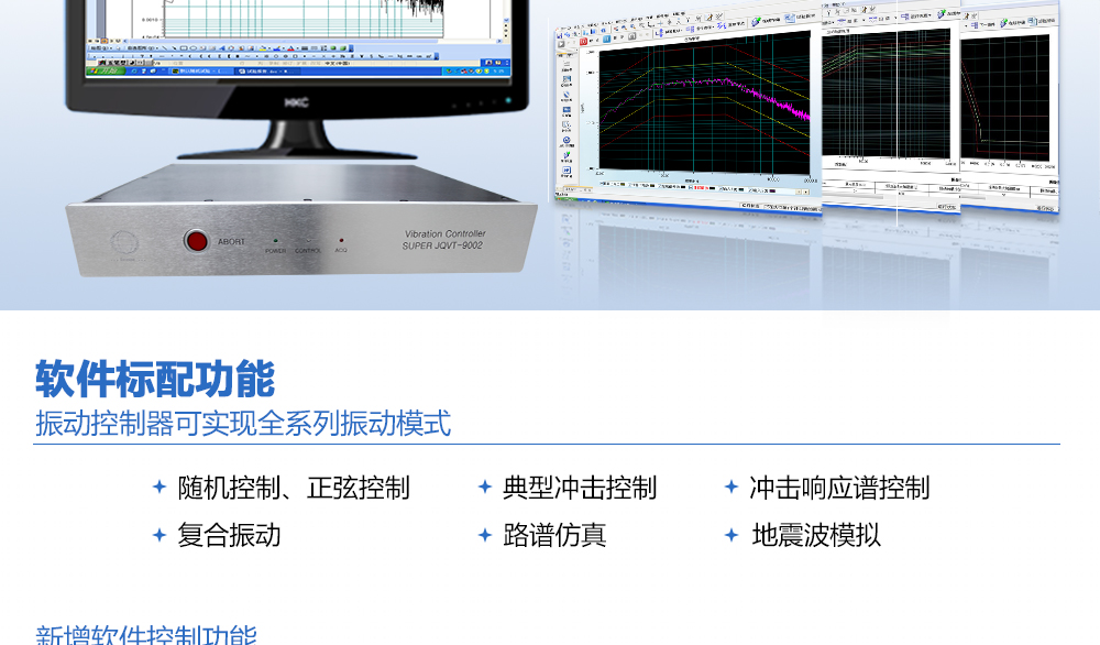 用途:振動控制器可實現(xiàn)全系列振動模式,包括隨機控制、正弦控制,典型沖擊控制、沖擊響應(yīng)譜控制、復(fù)合振動、路譜仿真以及地震波模擬。同時,為了進一步創(chuàng)新振動控制技術(shù),以適應(yīng)更