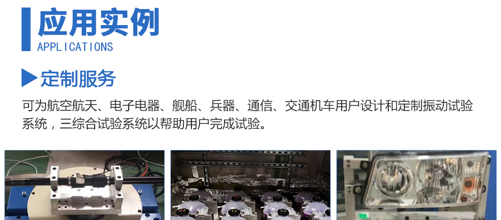 用途:可為航空航天、電子電器、艦船、兵器、通信、交通機(jī)車用戶設(shè)計和定制振動試驗系統(tǒng),三綜合試驗系統(tǒng)以幫助用戶完成試驗。