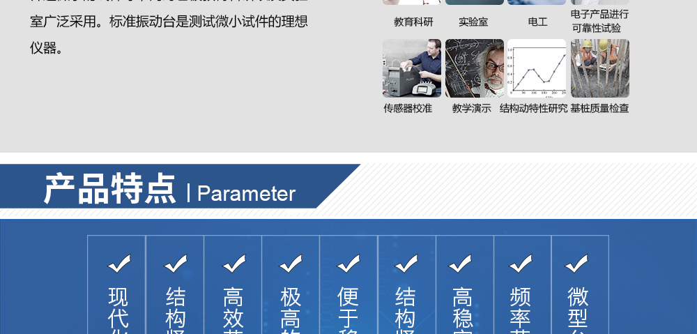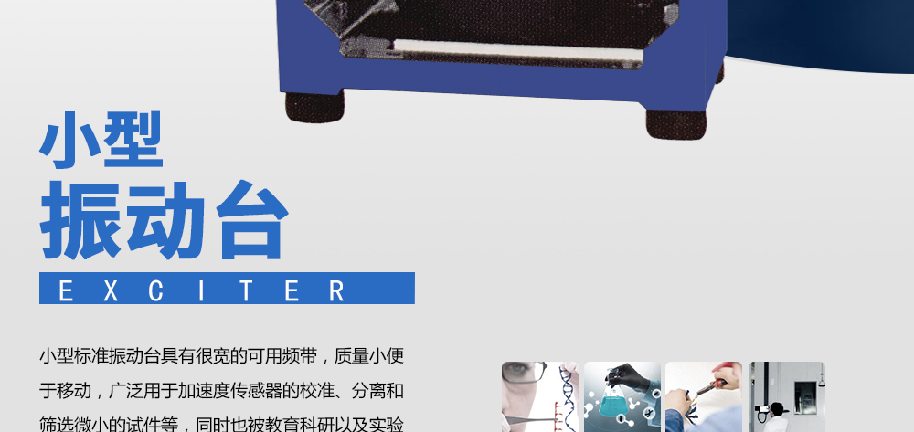 用途:小型標準振動臺具有很寬的可用頻帶,質(zhì)量小便于移動,廣泛用于加速度傳感器的校準、分離和篩選微小的試件等,同時也被教育科研以及實驗室廣泛采用。